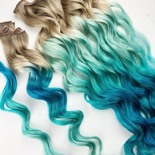 Teal Hair Green Hair Ombre Dip Dyed Hair Clip In Hair Etsy Sweden